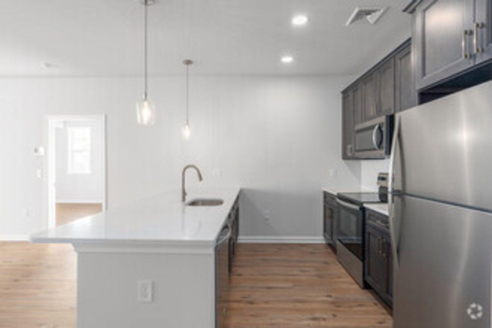 Recently Built, modern-luxury 2-bedroom 2 full bathroom. Equipped with all the amenities; luxury vinyl plank floors, large kitchen island, quartz counters, tile backsplash, stainless steel package; full refrigerator, self-cleaning oven, dishwasher, microwave. Ample room sizes with full size washer/dryer. Living room features walk out balcony. Built in monitoring system and key less entry. High efficiency heat pump w/ central air. Off-street parking. Tenant responsible for electric, water, sewer, internet.