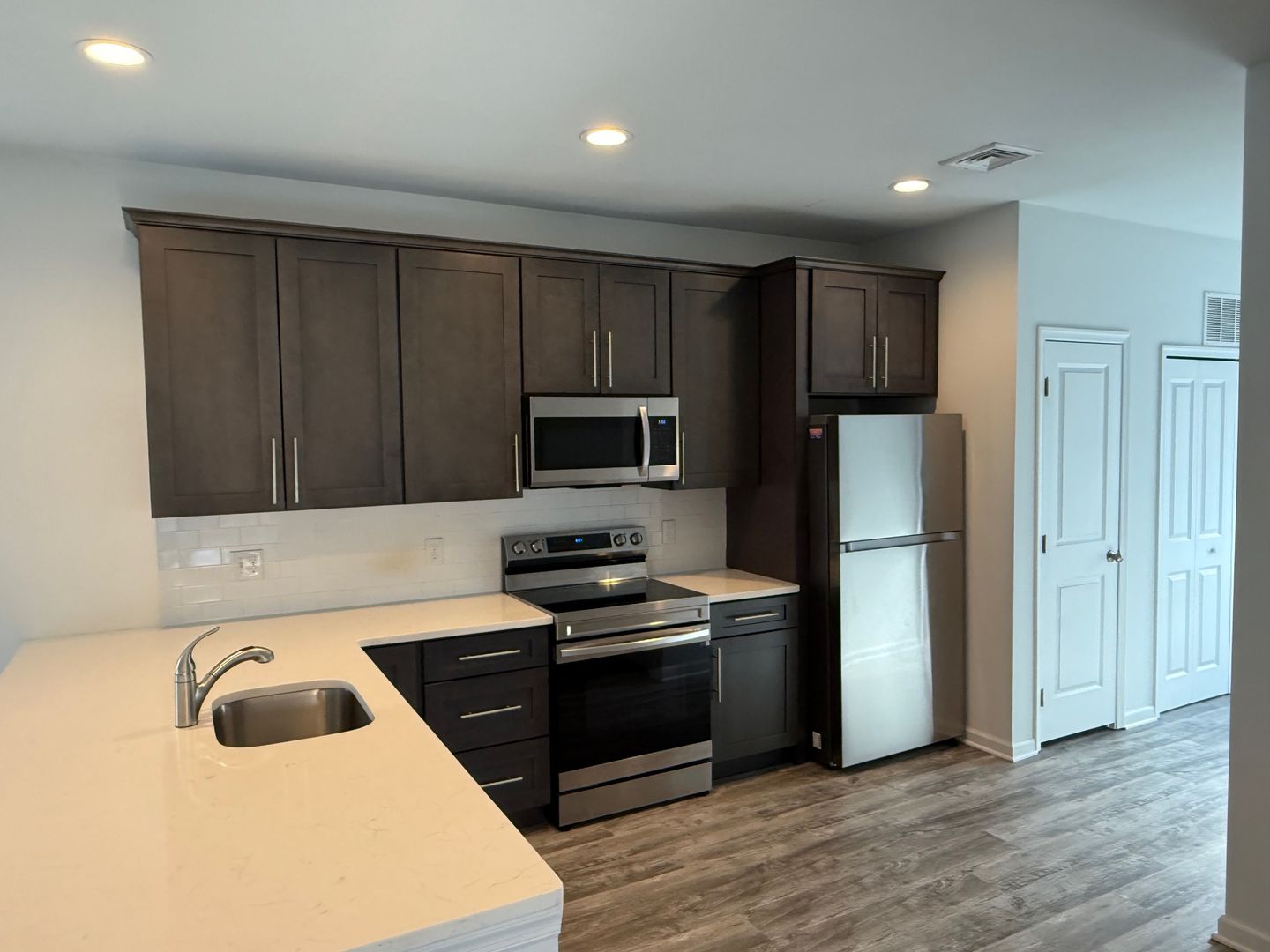 Private modern-luxury 2 bedroom 2 full bathroom SECOND FLOOR apartment with private entrance. Equipped with state of the art amenities; luxury vinyl plank floors, carpet in the bedrooms, custom kitchen shaker cabinets, quartz counters, tile backsplash, breakfast nook and stainless steel appliance package; full size Samsung refrigerator, self cleaning oven, dishwasher, built-in microwave. Ample room sizes, closet space, individual laundry room with washer and dryer. Main room features a walk out deck/patio, walk in closet, and full bathroom to make it your own private suite. Build in security and monitor system. Lawn care, snow removal, trash collection included.